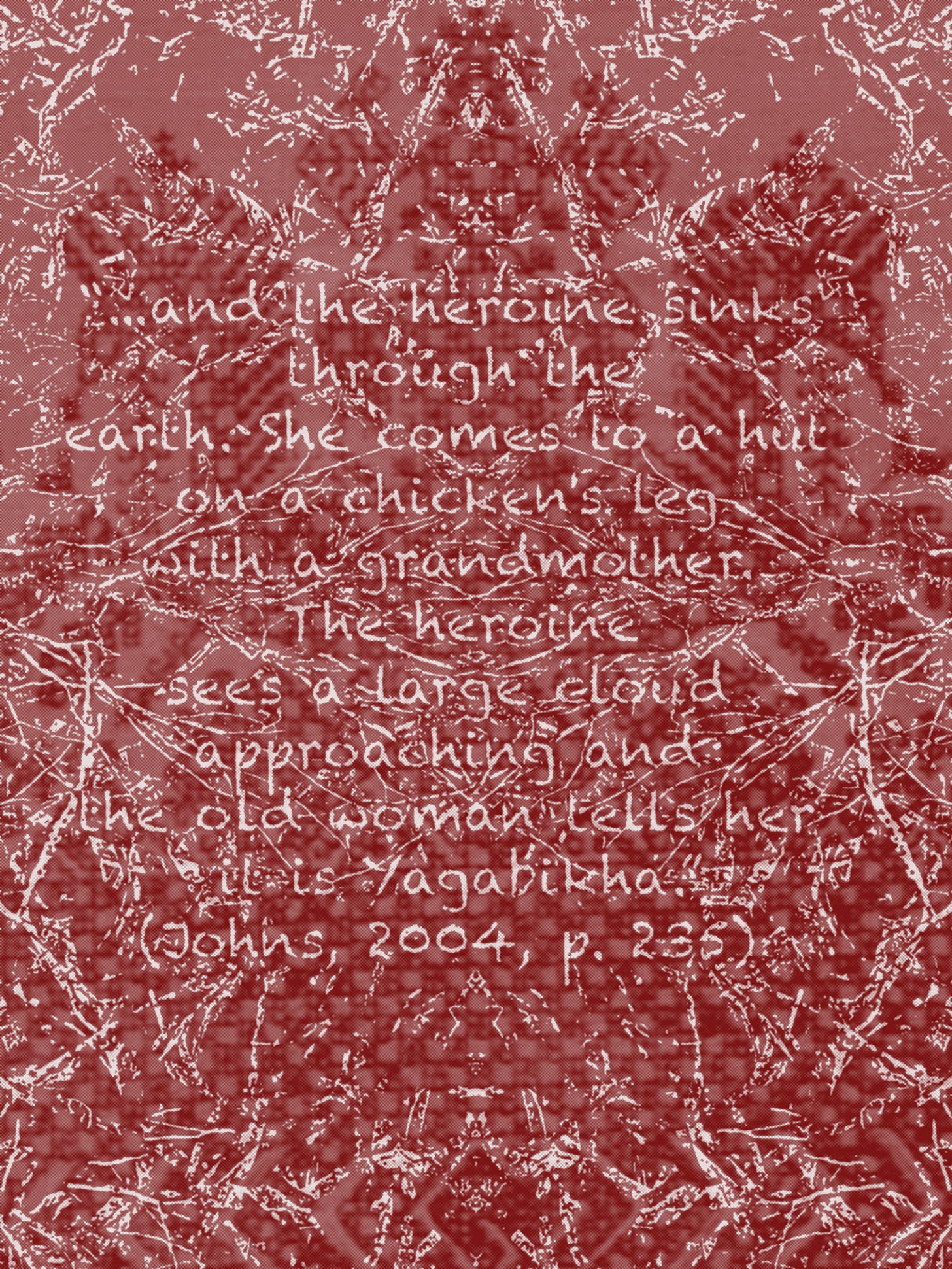 This is the call from the modernist visitor, over the hedge, to Baba Yaga’s hut. The visitor thinks he can control mystery with his codified language. But the hut will only turn if she wants to—it is an illusion that Baba Yaga and her domain can be commanded.